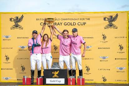 Das „British Open Polo Championship for the Cowdray Gold Cup 2025" wurde vom 24. Juni bis zum 20. Juli im historischen Cowdray Park Polo Club ausgetragen. Mehr als 35.000 Sportfans waren beim Halbfinale und Finale dabei. Das prestigeträchtige Turnier endete mit einem spannenden Endspiel, in dem La Dolfina/Scone vor mehr als 15.000 Zuschauern Kazak mit einem 9:8 besiegte. La Dolfina/Scone schrieben dabei Geschichte: Der legendäre Spieler Adolfo Cambiaso und seine Tochter Mia Cambiaso gewannen erstmals als Vater-Tochter-Duo in einem Team das „British Open Polo Championship for the Cowdray Gold Cup". Das Spiel von La Dolfina/Scone begann schon früh mit einem dominanten 3:0 im ersten Chukka (Spielabschnitt). Trotz eines beherzten Vorstoßes von Kazak und toller Tore von Nico Pieres behielt das Team dank präziser Teamarbeit und herausragender Defensivleistungen von Mia Cambiaso die Kontrolle über das Spiel. Die U.S. Polo Assn. hatte die Ehre, den „Most Valuable Player Award", den Preis für die/den wertvollste/n Spieler/in, an Mia Cambiaso von La Dolfina/Scone zu überreichen, die während des gesamten Turniers mit einer herausragenden Leistung überzeugte.