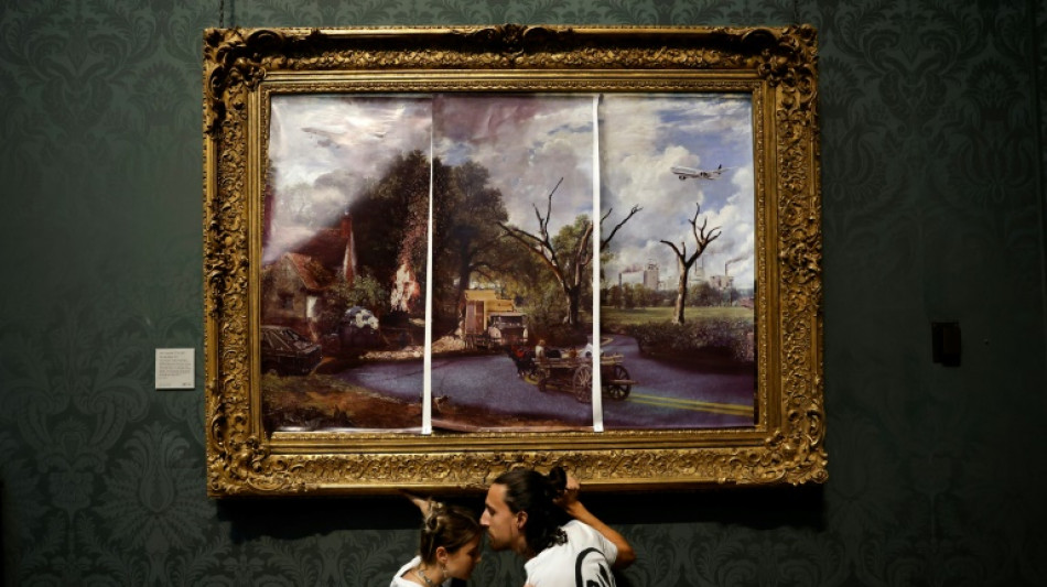 The couple targeted John Constable's 1821 painting "The Hay Wain" at the National Gallery in London as part of a countrywide protest against oil and gas projects.