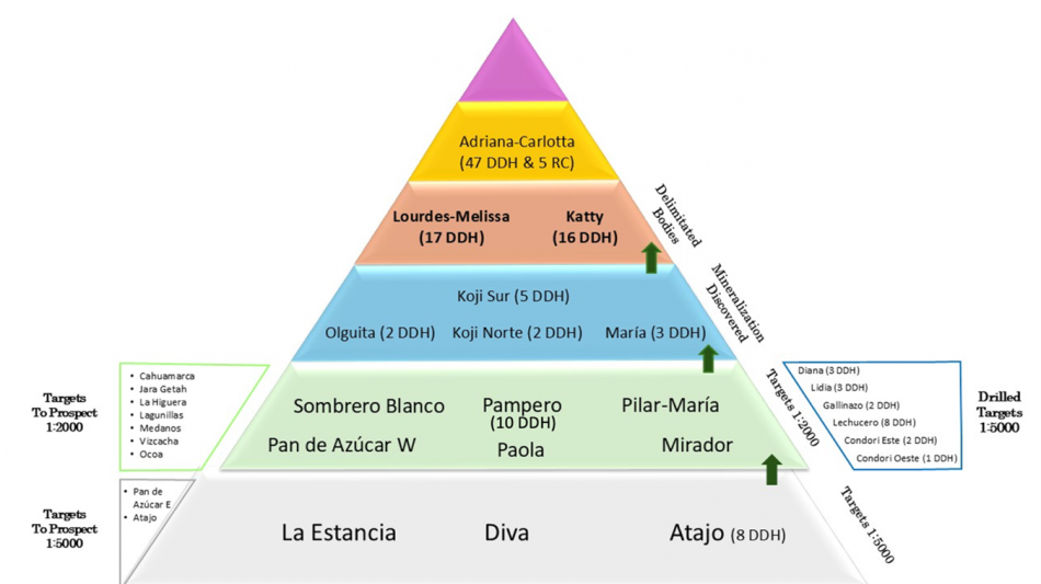 Camino's recent drilling campaign strategy has targeted prospects along the untested copper trend of the La Estancia fault that spans over 12 kilometers in NW-SE direction, parallel to the Diva Trend. New exploration targets at Sombrero Blanco along the La Estancia Fault were geochemically sampled and geologically mapped as potential next drilling targets, while historic exploration targets like Katty, Diana, and Lourdes within the Diva Trend were geologically reinterpreted and resampled to potentially expand the known copper zones. The Company also plans to continue drilling campaigns and surface mapping along the Diva, La Estancia and Atajo Trends to expand known mineralized zones with many prospective targets (Figure 2).