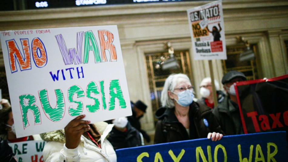 "Pas de guerre avec la Russie", "Plus de guerre, ni froide, ni chaude. Ce dont on a besoin c'est d'amour", disaient les panneaux brandis lors d'une petite manifestation samedi à New-York.